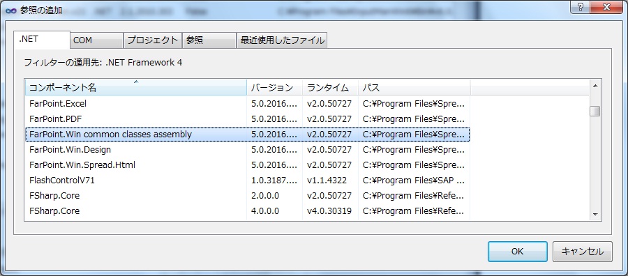 「FarPoint.Win」のうしろにごちゃごちゃしてるのがくっついてるから探すのに時間がかかった・・・